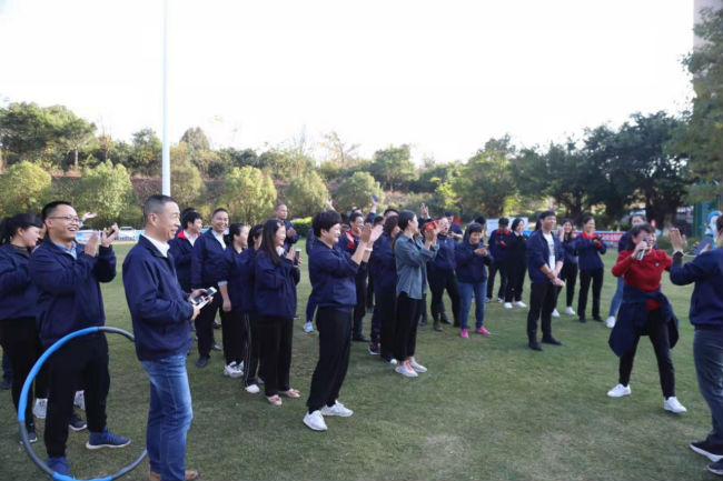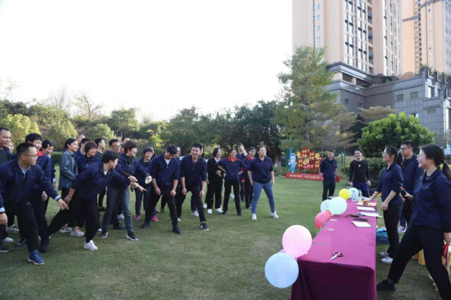 隨后,團建游戲正式開始,全體人員分成五組,每組現(xiàn)場選隊長、取隊名及口號,并將隊名、口號分別寫在卡紙上。游戲有一圈到底、有獎競答、多人兩人三足、電臀抖甩、愛的魔力轉(zhuǎn)圈圈、指東往西、多人你畫我猜等,這些游戲既鍛煉了體能,還活躍了思維。每一個環(huán)節(jié)獲勝隊伍都能獲得獎品及獎勵分,累計分數(shù)最高的隊伍還能獲得一等獎大禮包一份。
